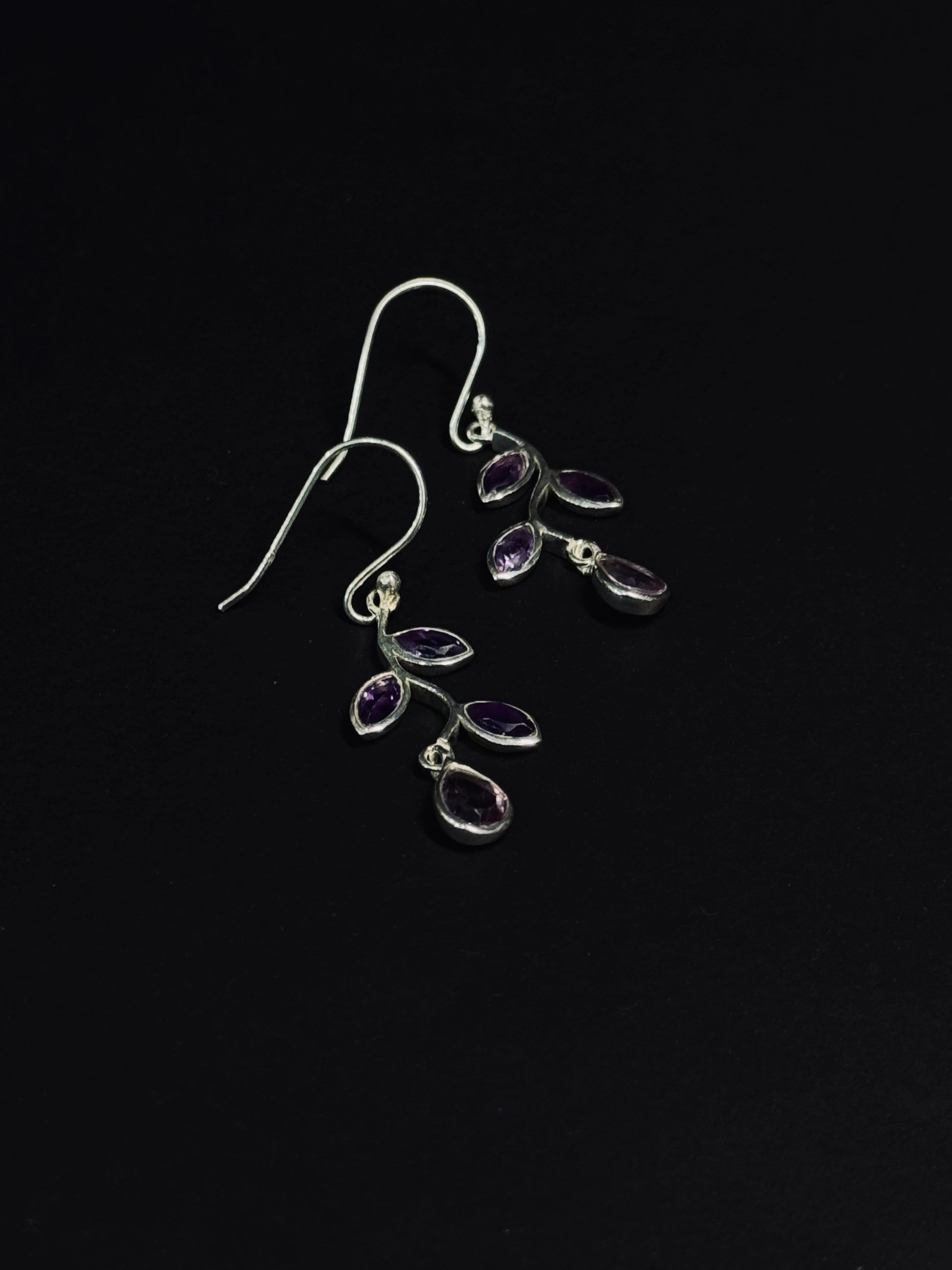 Natural Amethyst Cabochon Drop Earrings – 925 Sterling Silver Vintage Teardrop